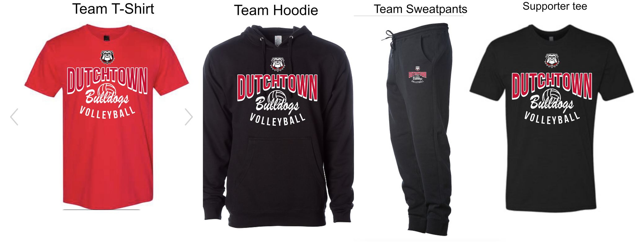 This Dutchtown Middle School Volleyball warm up suit. This warm up set consist of a 10oz hoodie 80 cotton/20 polyester blend fleece generous fit, 8.5oz cotton/polyester blend fleece relaxed fit, and a shirt. also for the parents and friends we have and additional shirt that they can buy as well.